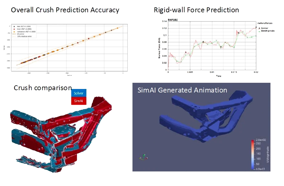 - SimAI model accurately predicts the bumper deformation and barrier forces as a transient response. (SimAI)