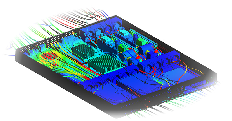 Chip-level junction temperature prediction, board-level heat spreading, and assembly-level airflow and enclosure ventilation modeling to ensure thermal reliability across integrated electronic systems. - Power Systems